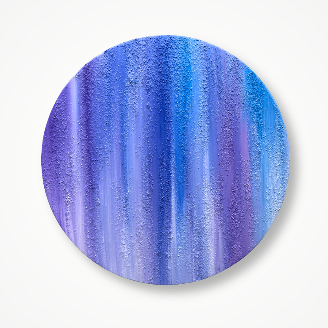 Infused with meteorite dust and stones gathered from Argentina, Earth Song mirrors the soundwave patterns of Earth’s electromagnetic field. Layers of deep blues, violets, and a soft metallic sheen capture the mystery and shimmer of our spinning world—an invitation to listen beyond the visible and feel the wonder of the cosmos within.