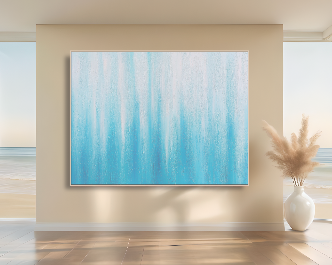 Composed with sand gathered from the beaches of the Caribbean, layered with eco-oil paints on a gallery-wrapped canvas. Each element carries the essence of water and stillness, reflecting the tranquility of the sea—and bringing serenity into your space.